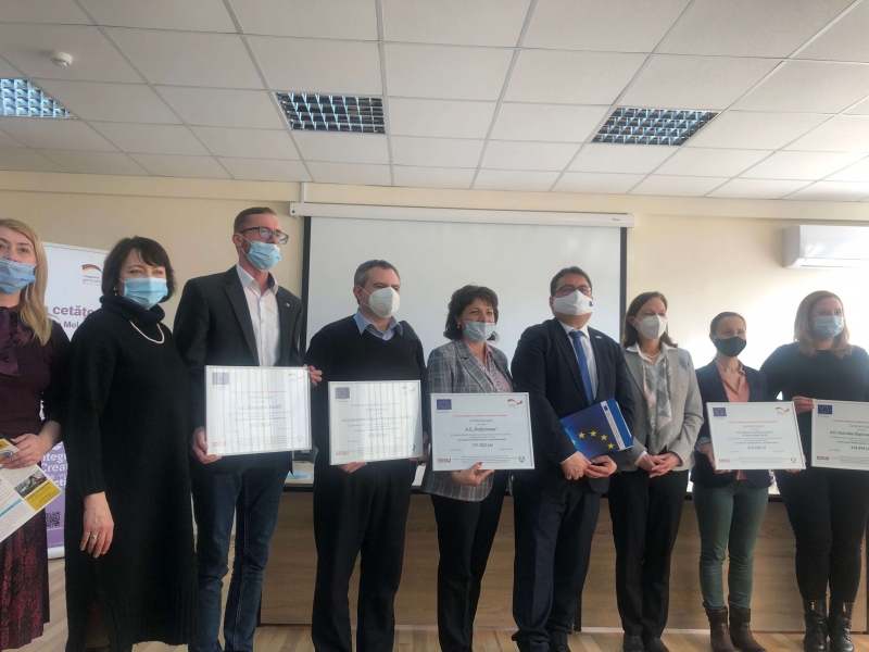 Certificatele de grant au fost înmânate beneficiarilor de către Excelența Sa, Peter Michalko, șeful Delegației UE la Chișinău și Ambasadorul Extraordinar şi Plenipotenţiar al Republicii Federale Germania în Republica Moldova, doamna Angela Ganninger.